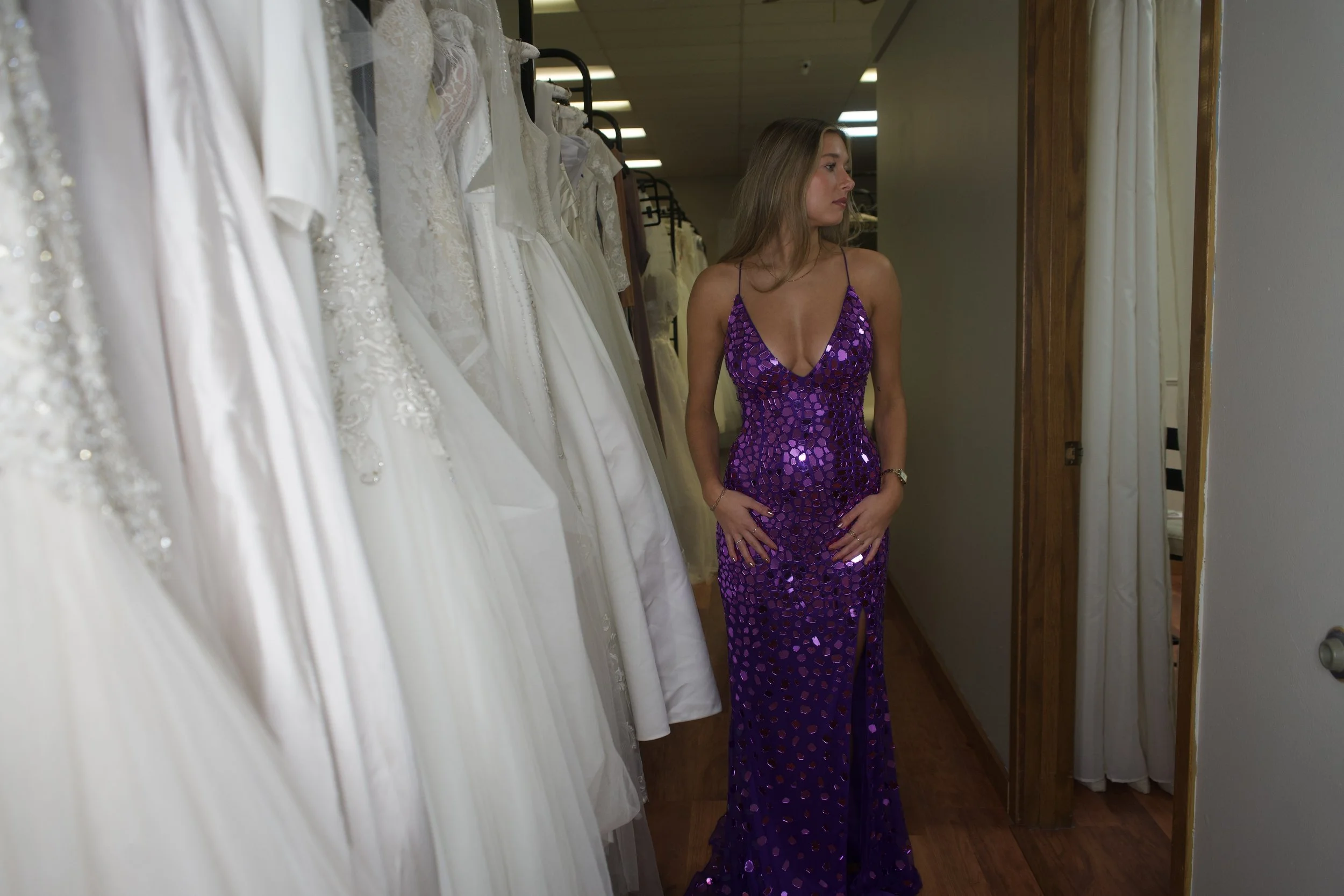 Our prom dress collection is perfect for those who want to find their dream look and take it home the same day. We carry a mix of brand-new styles and handpicked consigned pieces, offering a wide range of looks from sleek and sophisticated to bold and show-stopping. With fresh inventory arriving regularly, you’ll find unique options that let your personality shine.